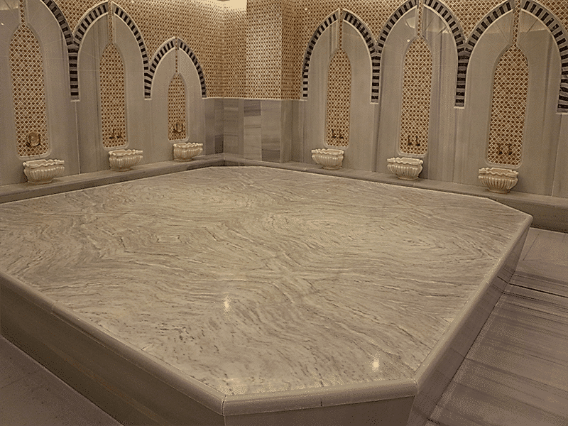 Osmanlı ve Selçuklu hamamlarının en önemli figürlerinden bir tanesi olan göbek taşı sauna ve buhar odalarının yüksek sıcaklıklarda hızlı terletmesine karşın göbek taşı daha yavaş ve kaliteli bir terleme sağlar. Böylelikle vücuttaki toksin maddeyi de dışarı atar.