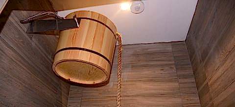 Şok duş kovası, kullanıcının ipi çekmesi ile üzerine bol su dökülmesi prensibi ile çalışır. Kova en fazla 15 litre su alır. Kova üzerinde bulunan ayarlama aparatı sayesinde bu miktar 10 litreye kadar ayarlanabilir. Her kullanım sonrasında kovadaki su yenilendiği için sağlıklı ve hijyenik bir şok etkisi sağlanmış olur.